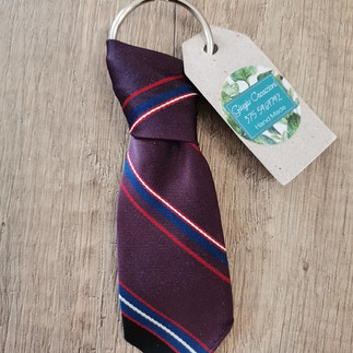 As with turbans, key rings are also made thanks to the regeneration of men's ties. In this case the final, narrower part is used, recreating the tie knot directly on the metal ring. Its iconic shape makes it the perfect gift for a man, to make his sets of home, office or car keys recognizable and decidedly lighter. By choosing an alternative and nice gift like these key rings, it will surprise those who receive it, with a nice touch of personality!